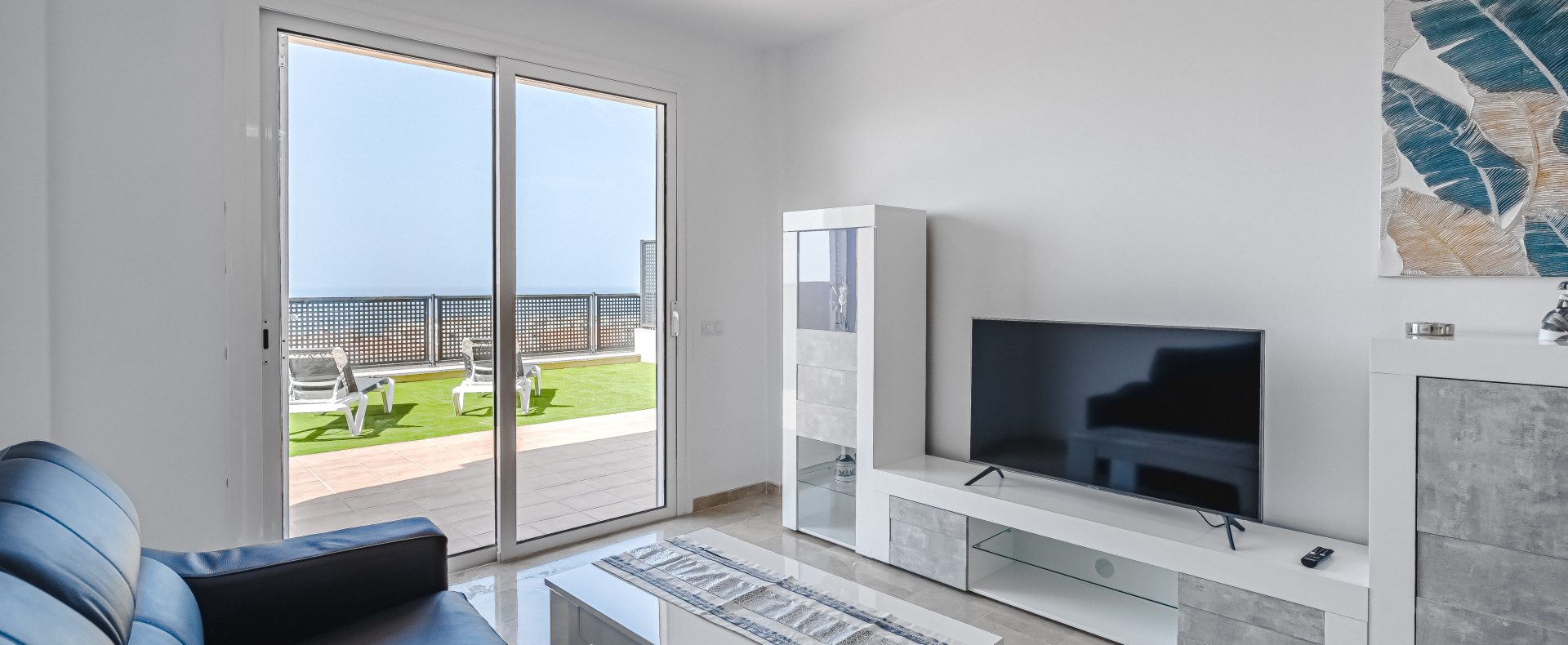 Have a great vacation in this spacious 1 bedroom apartment with big sun terrace in Puerto Santiago in the south of sunny Tenerife! Apartment features spacious living room, separate kitchen and 1 bedroom, big private terrace with ocean and sunset views! It can comfortably accommodate 3 people, rather you are family or friends!