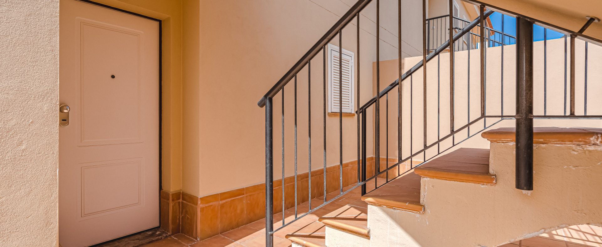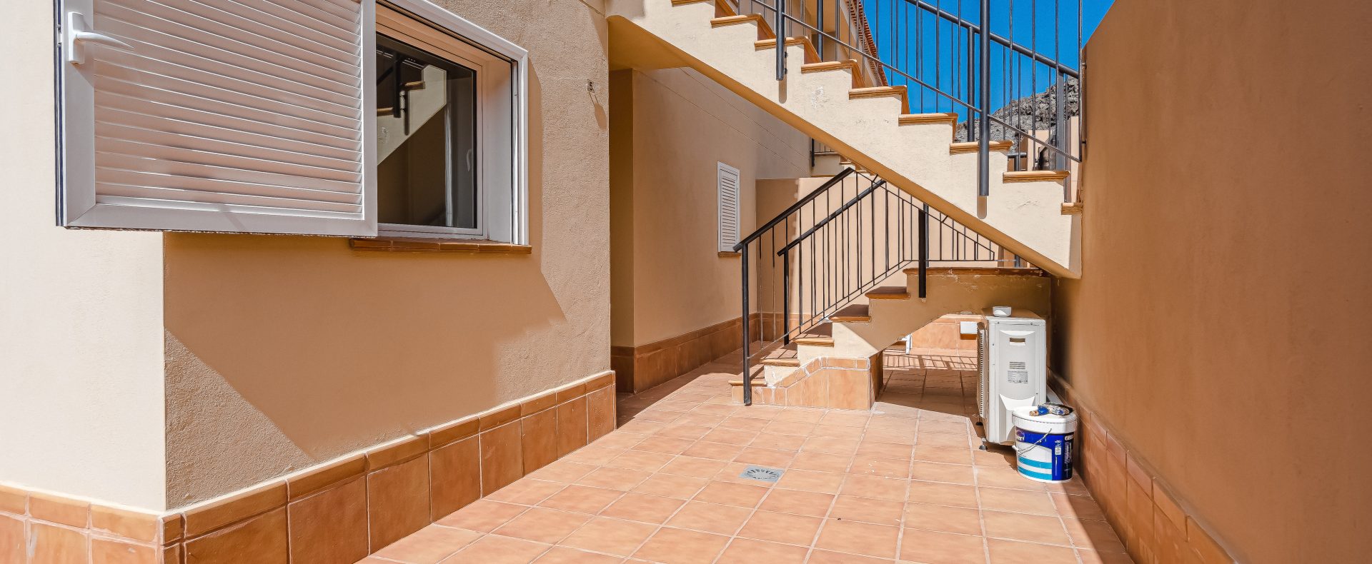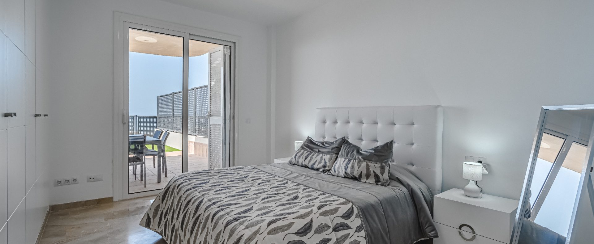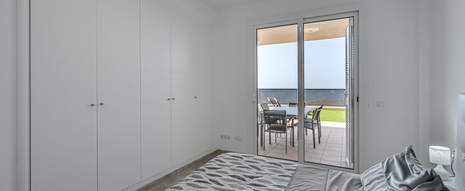 — The windows of the bedroom are having blinds and are facing the terrace