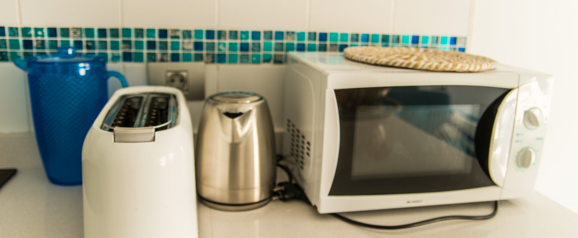 — The kitchen is equipped with stove and oven, microwave, fridge with freezer, coffee machine and kettle