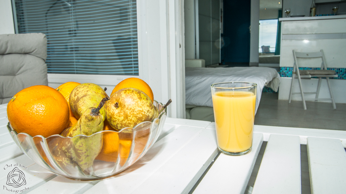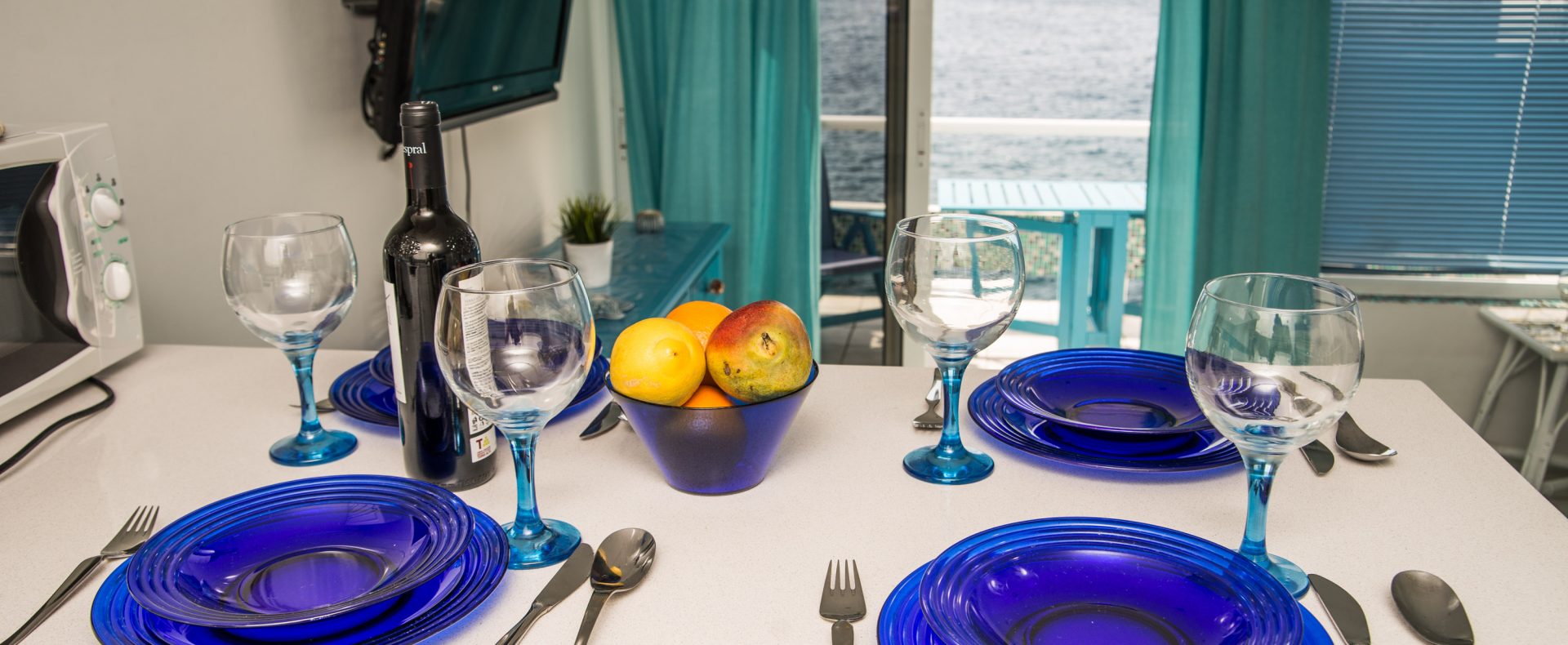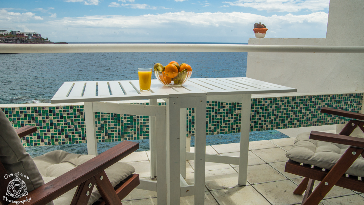 — Meals can be served and enjoyed outside at this prime location – just above the waves as there is a small table and chairs
