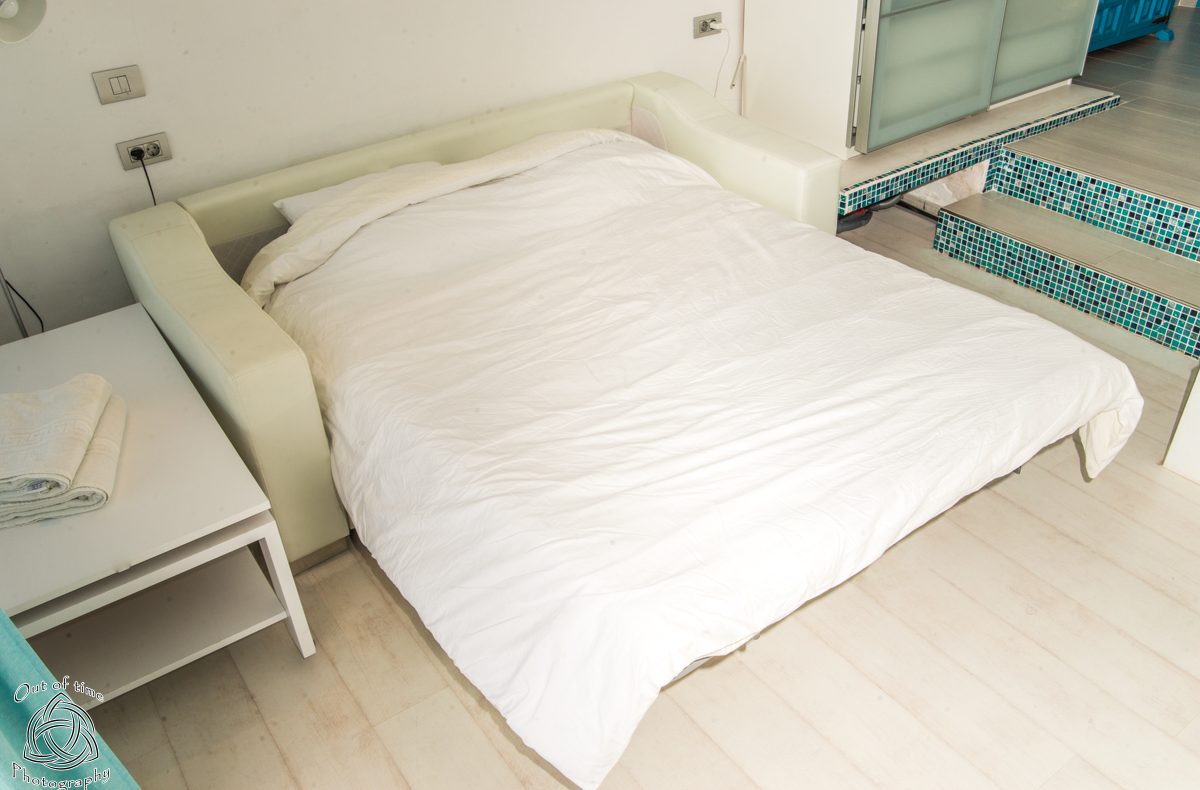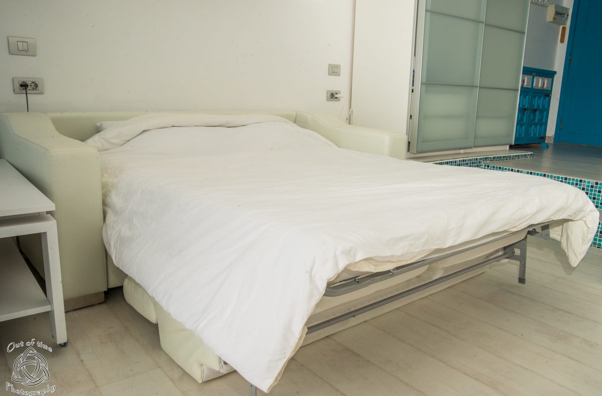 — Comfy sofa which can be transformed into bed at night