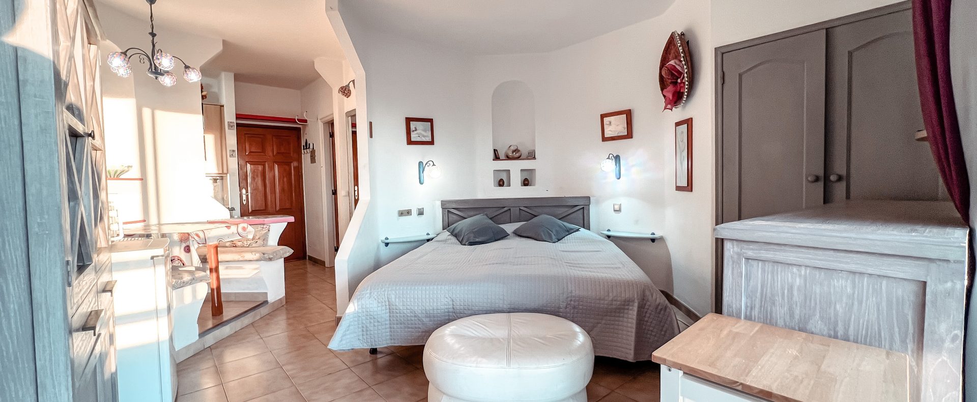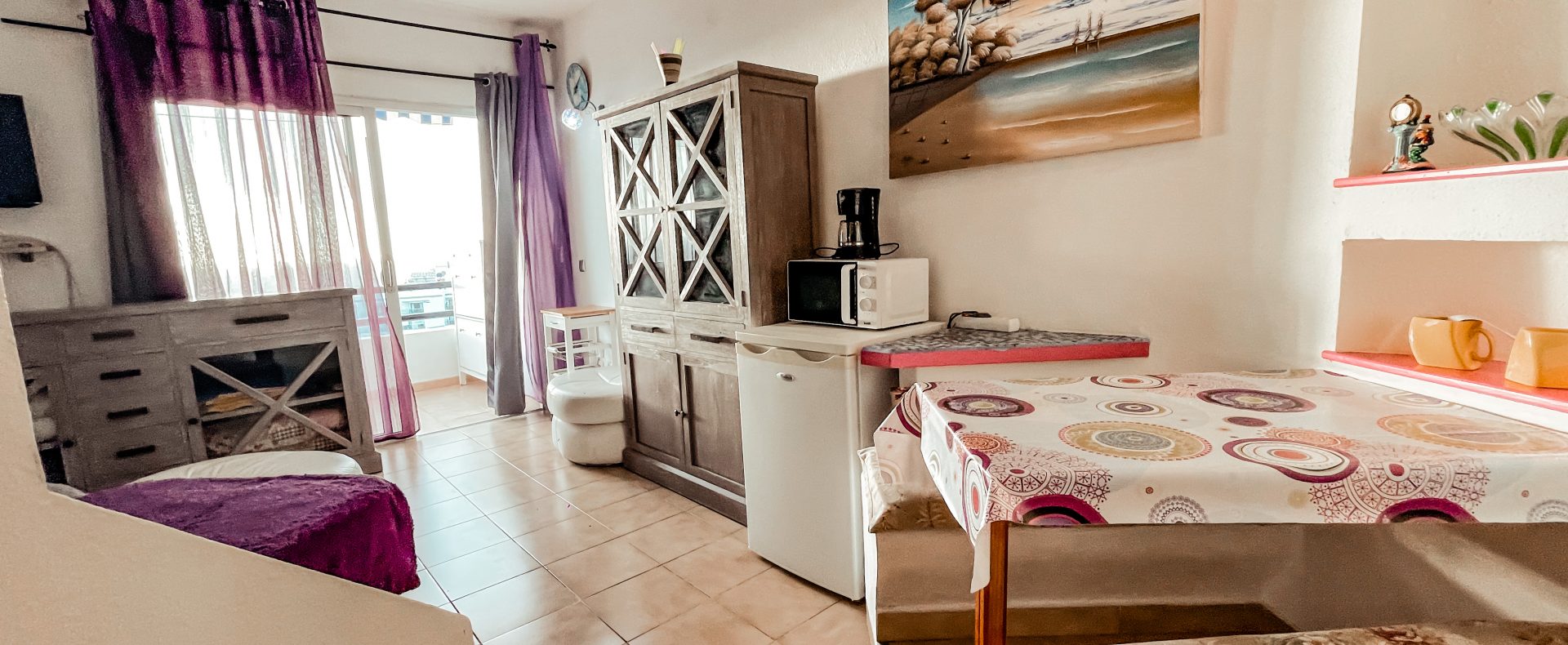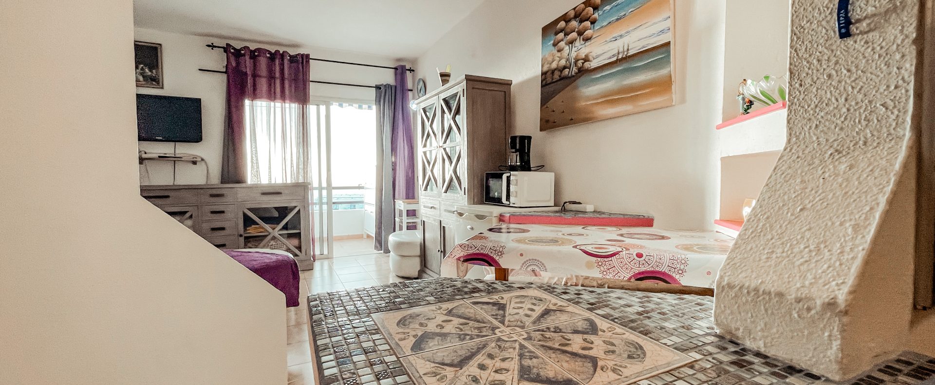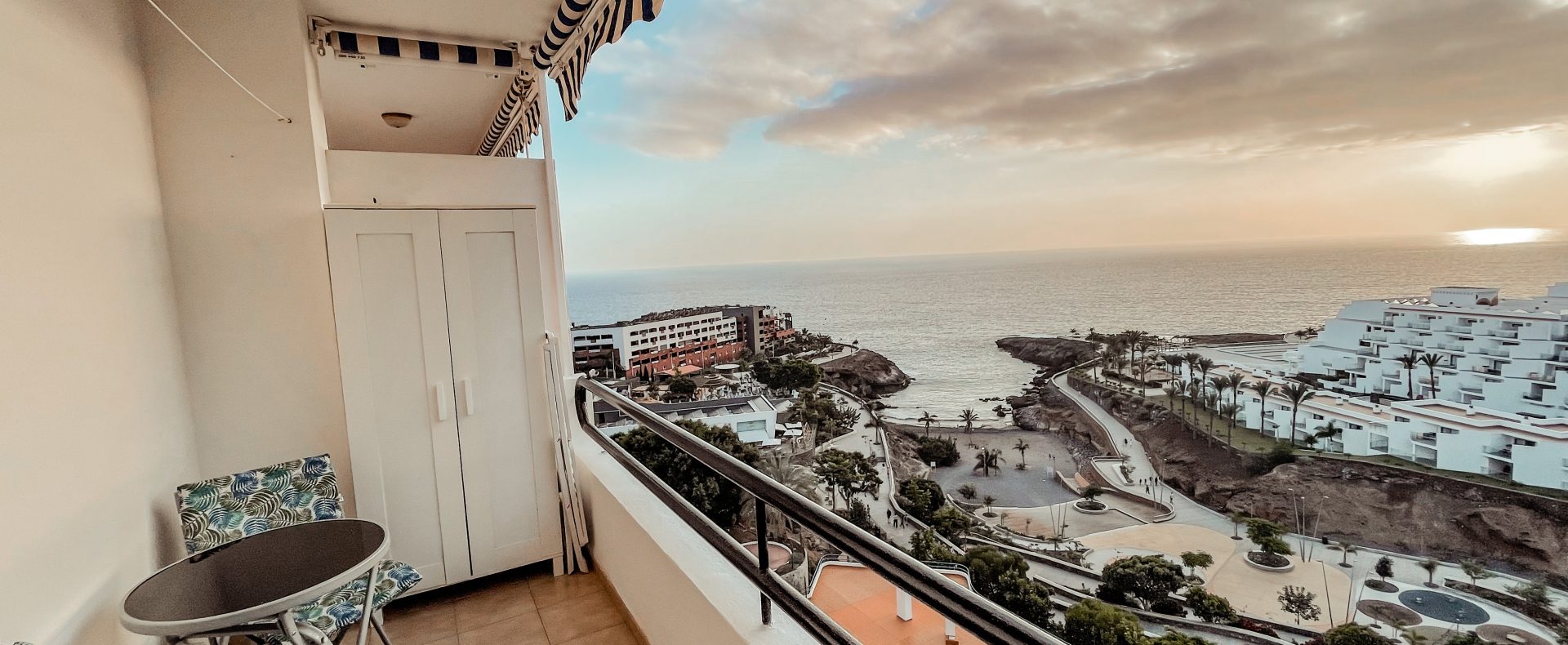 This ocean view studio apartment with easy access to the beach is located in tourist loved vivid Playa Paraiso. Beautiful view of Atlantic ocean with gorgeous sunsets over La Gomera island! Apartment can comfortably accommodate 2 people for great vacation in sunny Tenerife.
