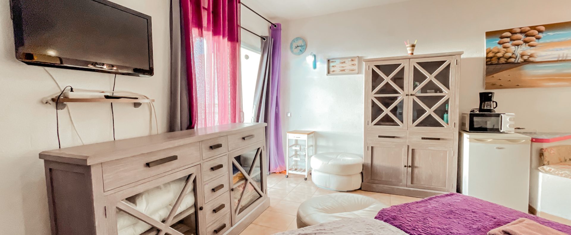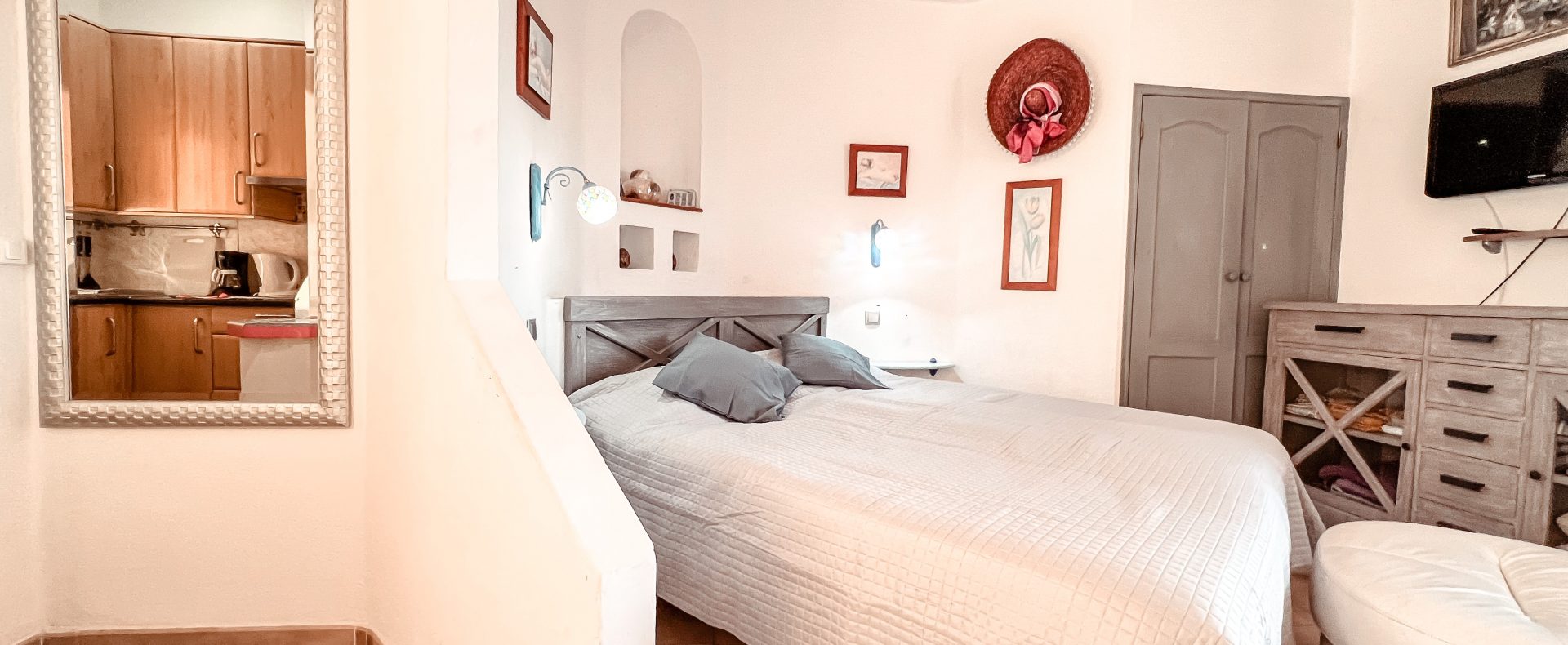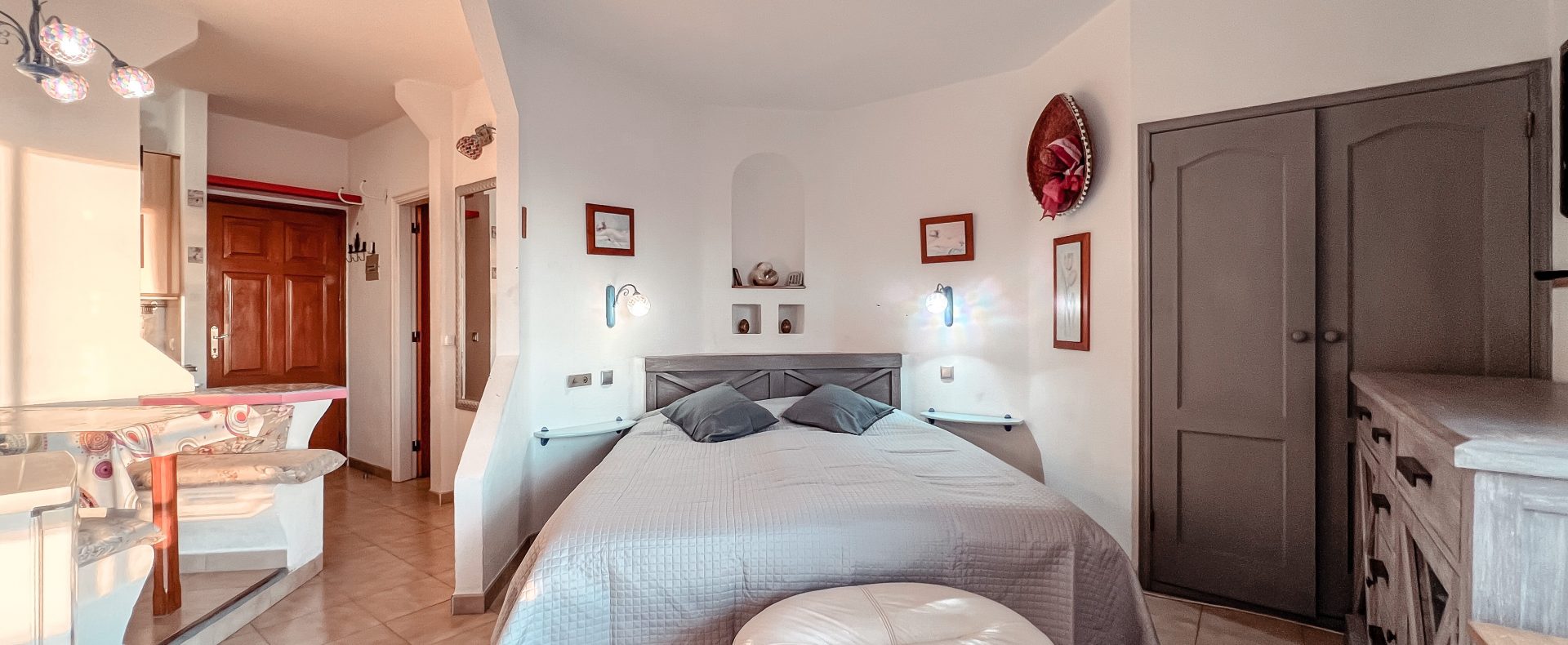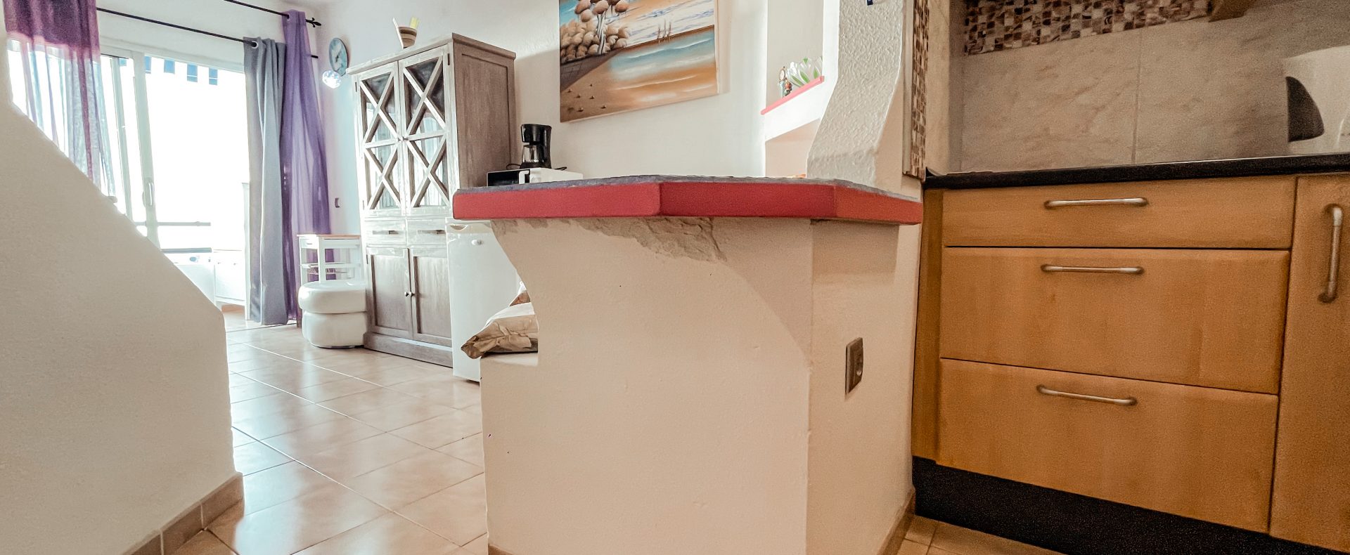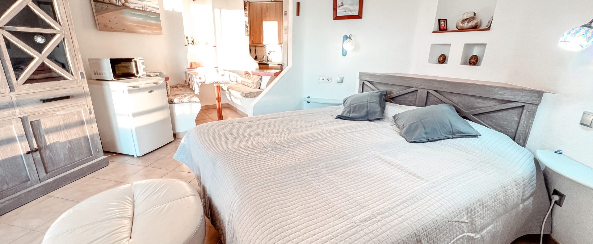 This ocean view studio apartment with easy access to the beach is located in tourist loved vivid Playa Paraiso. Beautiful view of Atlantic ocean with gorgeous sunsets over La Gomera island! Apartment can comfortably accommodate 2 people for great vacation in sunny Tenerife.