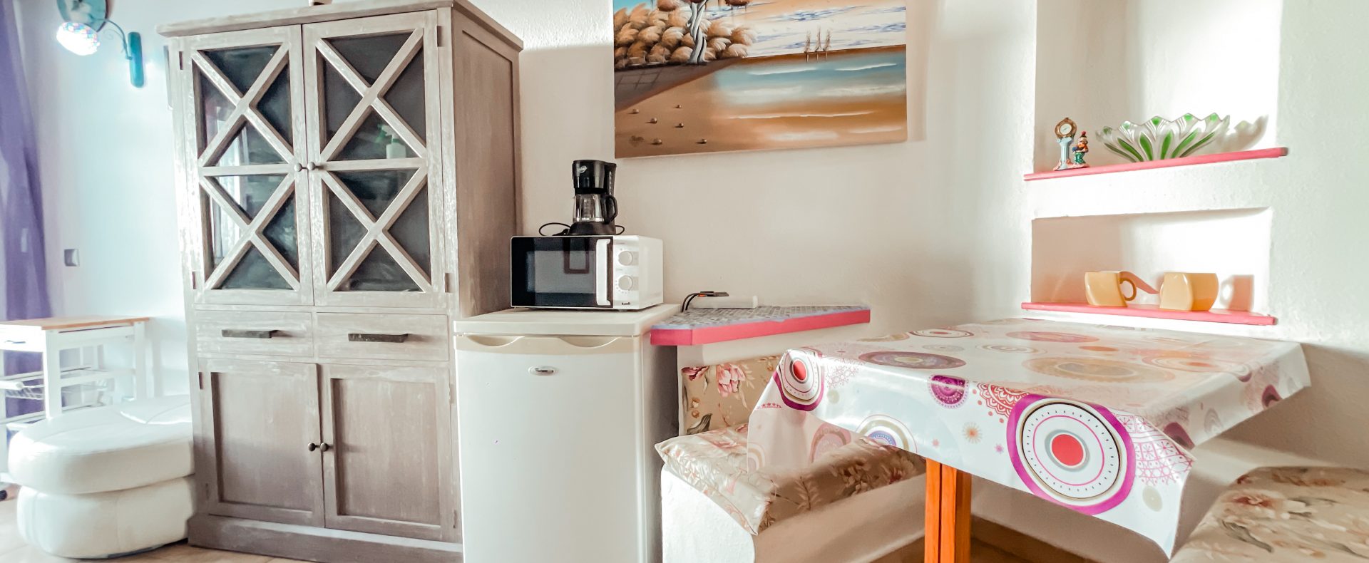 — The kitchen is equipped with stove, microwave, small fridge with freezer, coffee machine and kettle, so your holiday is more joy and less work