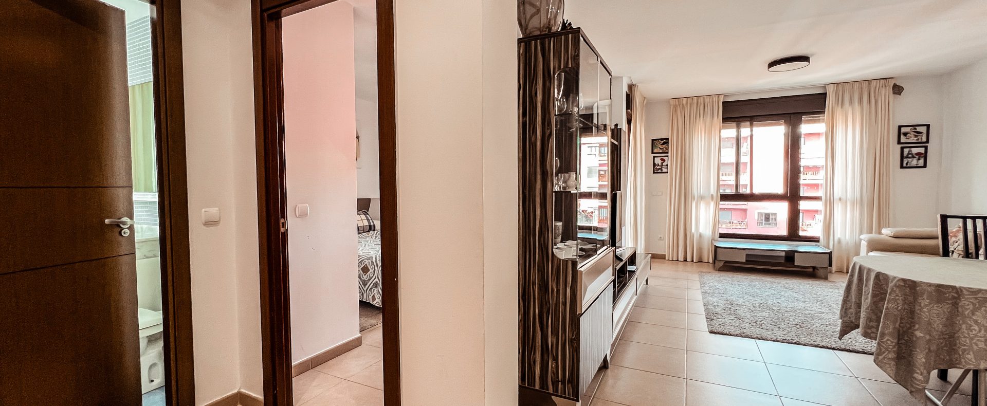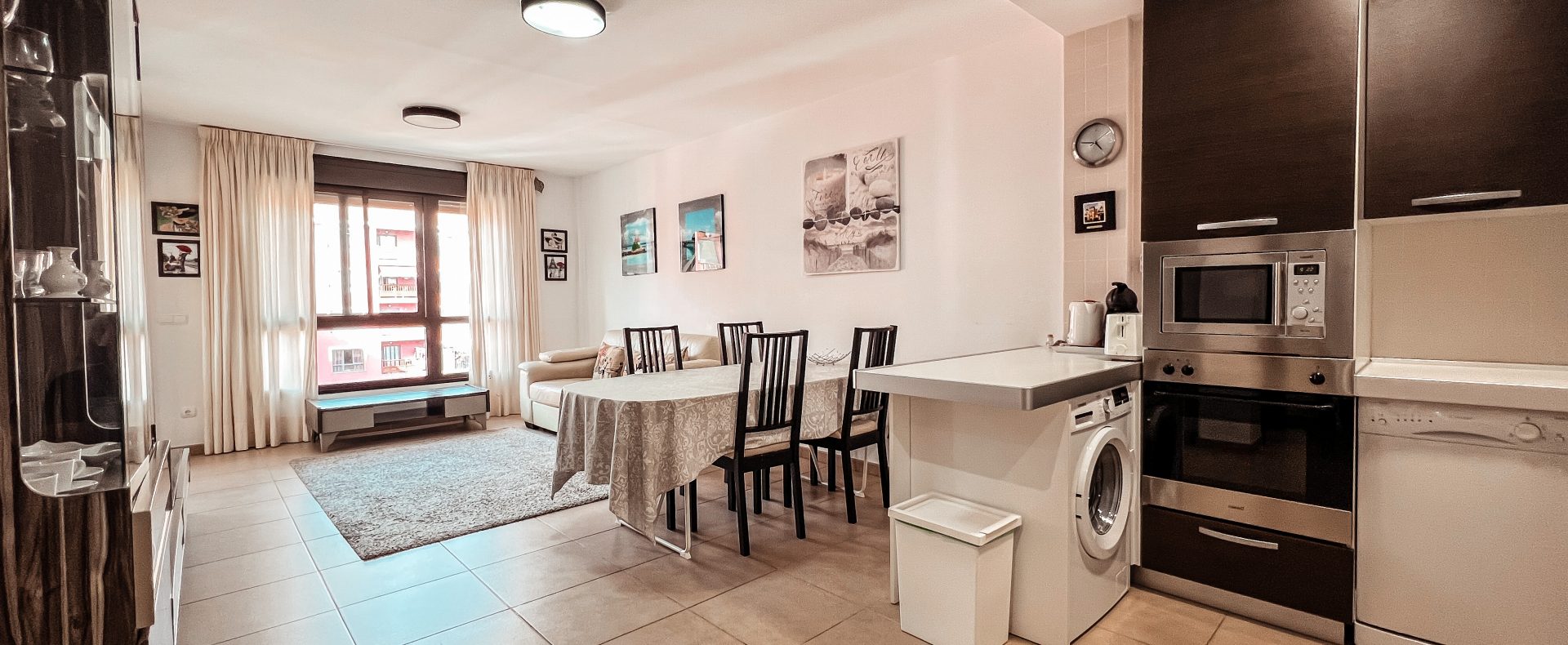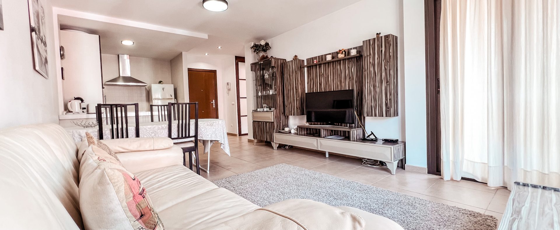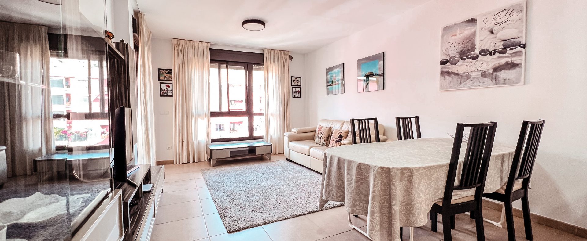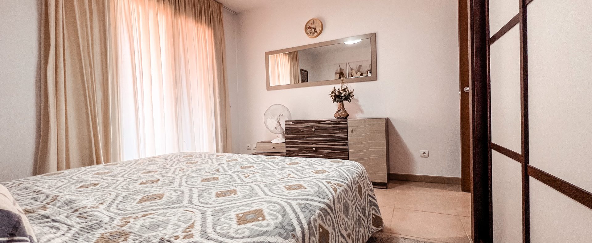 This spacious and bright apartment in residential building in Palm Mar is featuring 1 bedroom, 1 bathroom and open concept kitchen with spacious living room. Private balcony overlooks mountains and quiet street. There is a pool and padle court waiting to be used downstairs! This apartment can comfortably accommodate 4 people for great vacation in sunny Tenerife.