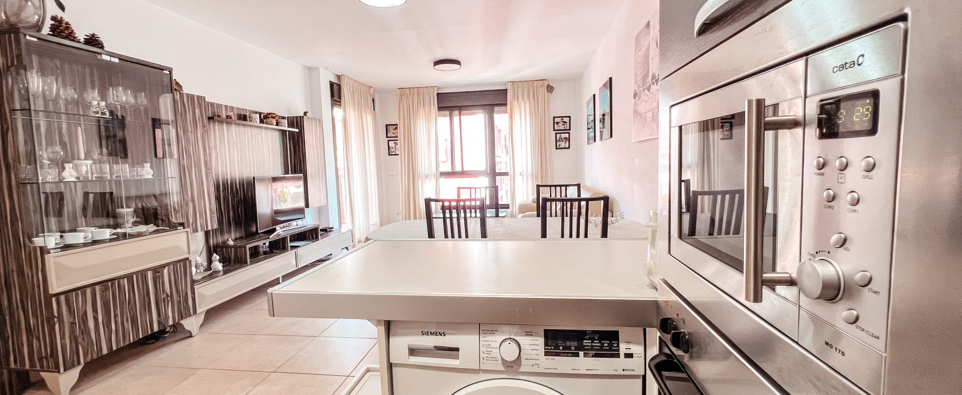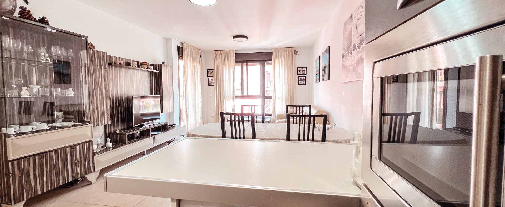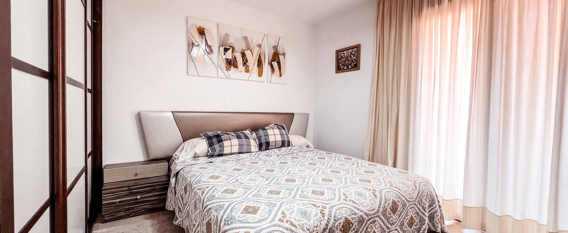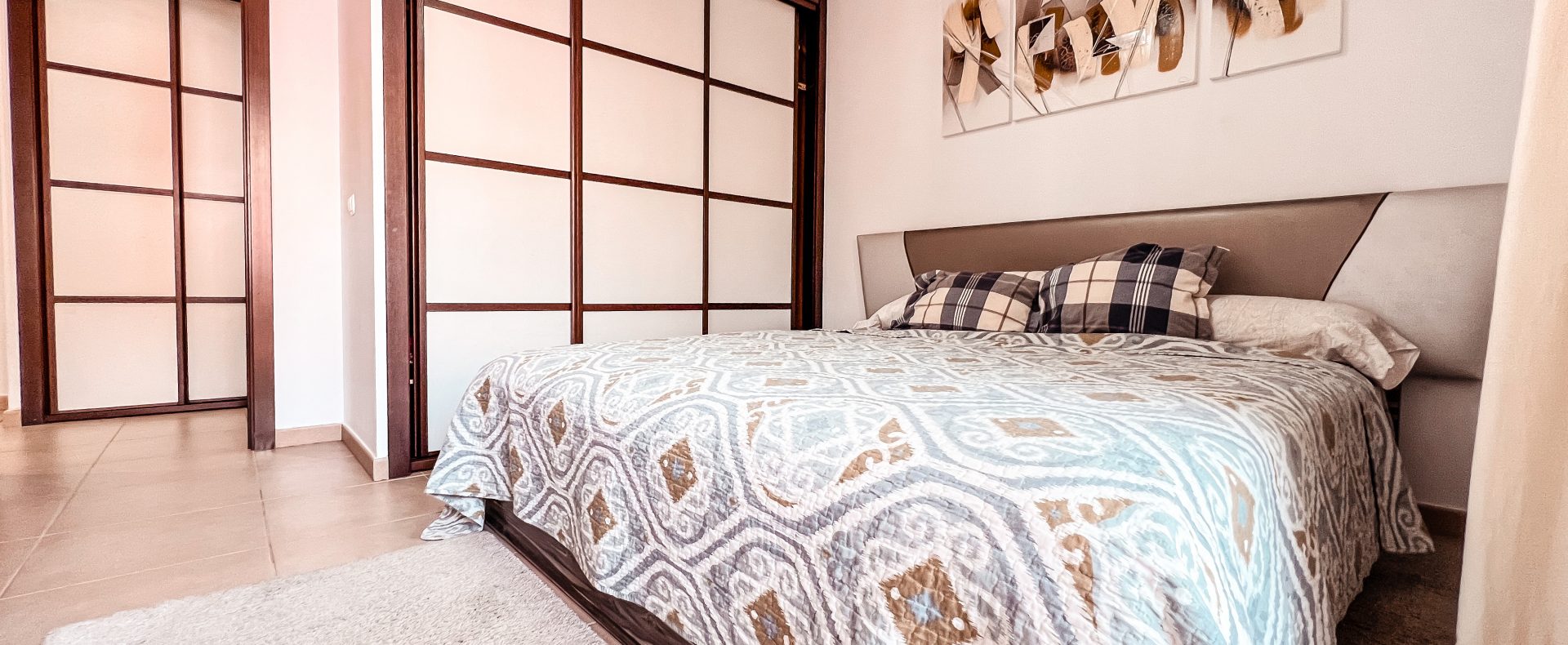 This spacious and bright apartment in residential building in Palm Mar is featuring 1 bedroom, 1 bathroom and open concept kitchen with spacious living room. Private balcony overlooks mountains and quiet street. There is a pool and padle court waiting to be used downstairs! This apartment can comfortably accommodate 4 people for great vacation in sunny Tenerife.