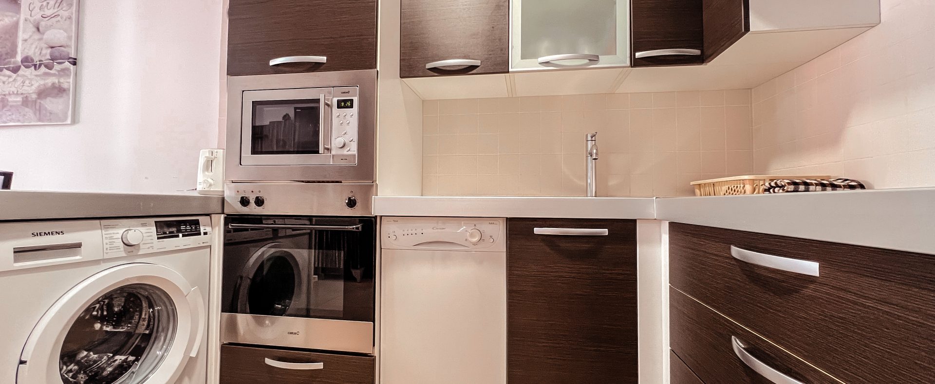 — The kitchen is equipped with stove, oven, microwave, fridge with freezer, coffee machine and dishwasher, so your holiday is more joy and less work. There is also a washing machine