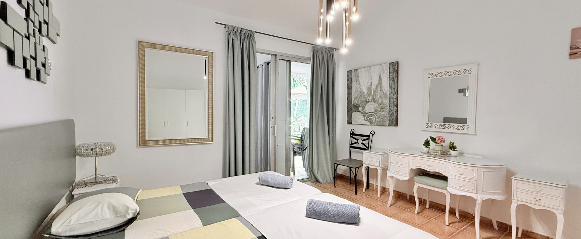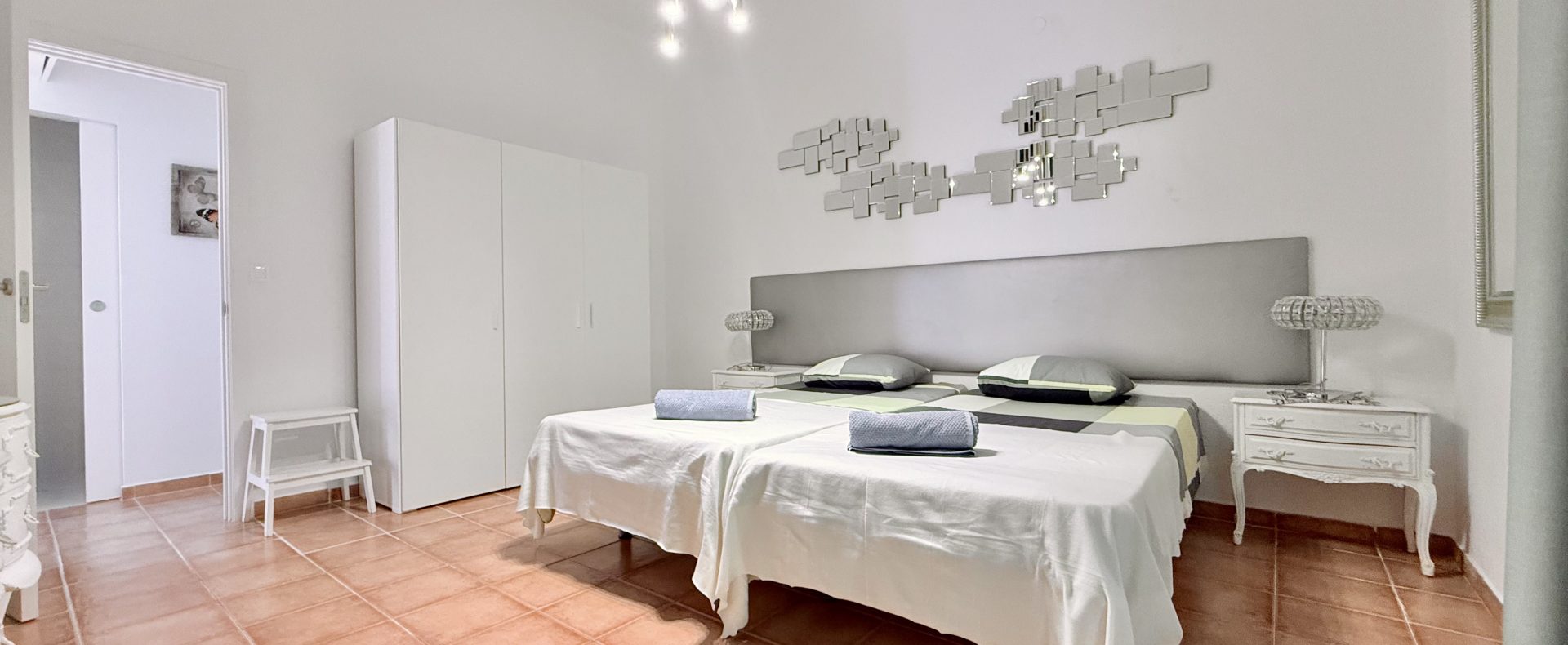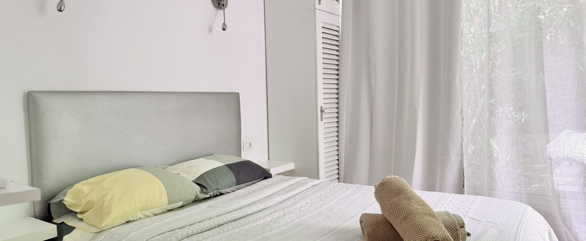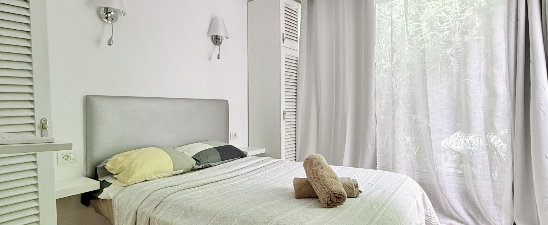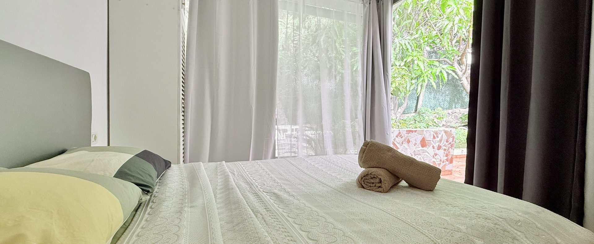 — Second Bedroom with double bed and fresh linens, direct access to the garden, ideal for children or guests