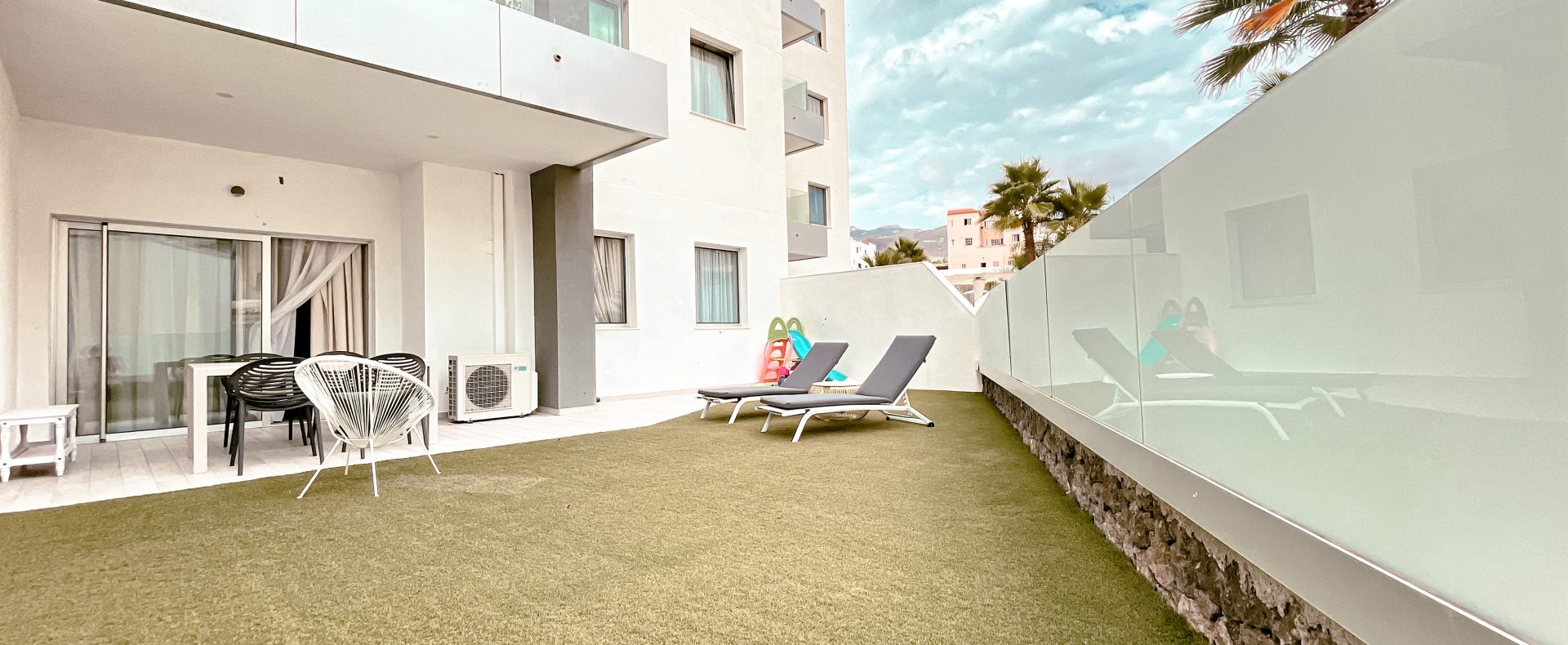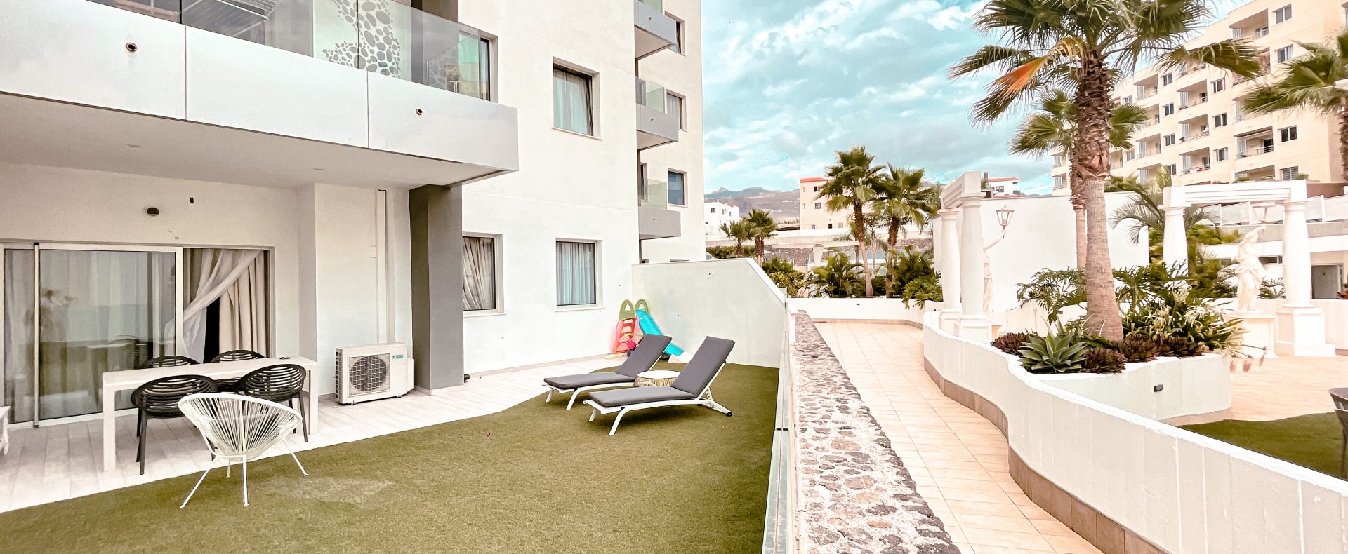 Relax on a stunning beach, naturally sheltered by cliffs, or take a leisurely stroll along the newly renovated oceanfront promenade, where breathtaking views await. For even more excitement, the lively touristic hub of Las Americas is just a 15-minute drive away!