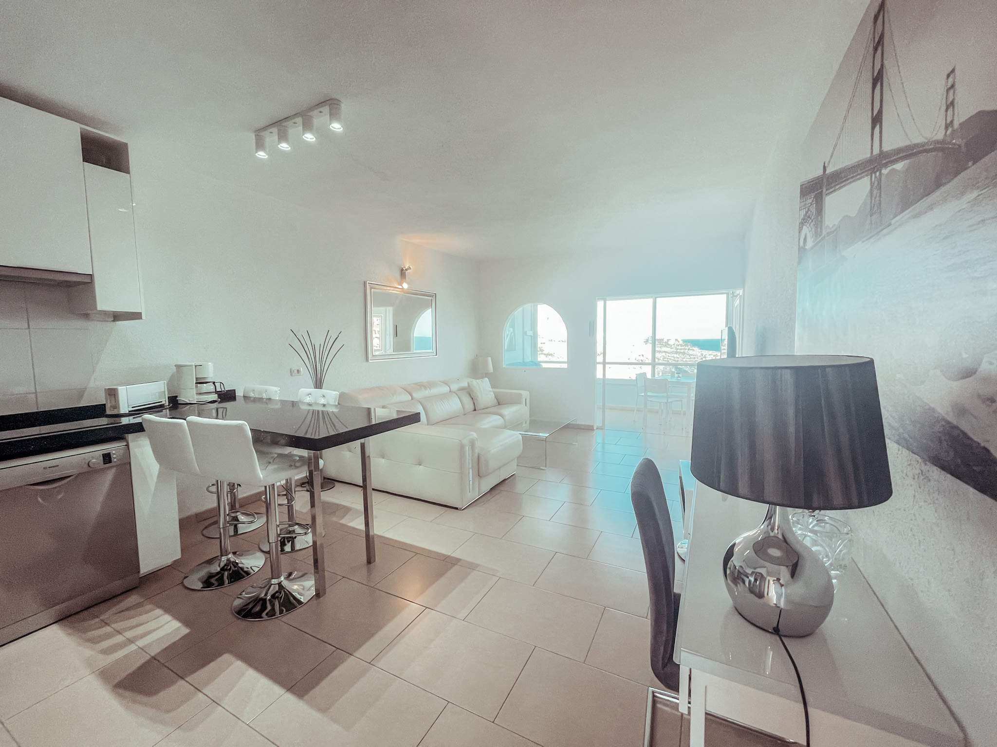 Spacious and bright one bedroom apartment with beach and ocean at the feet! Enjoy the ocean breeze and soothing sound of waves every day of your stay. This apartment can comfortably accommodate 2 guests for a great vacation or winter escape in sunny Tenerife.