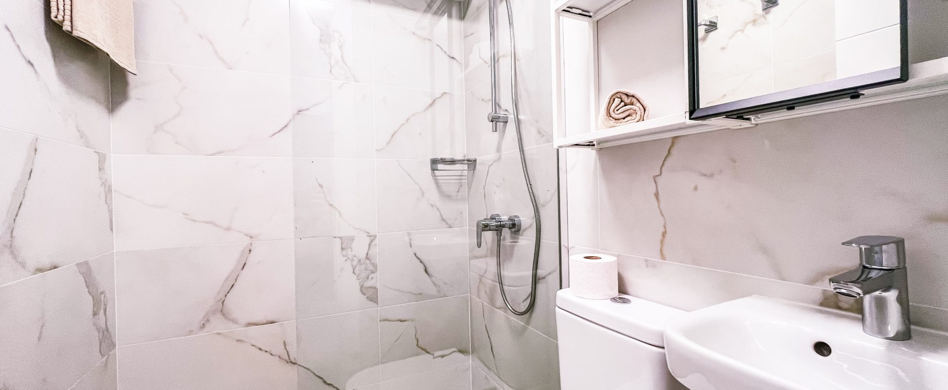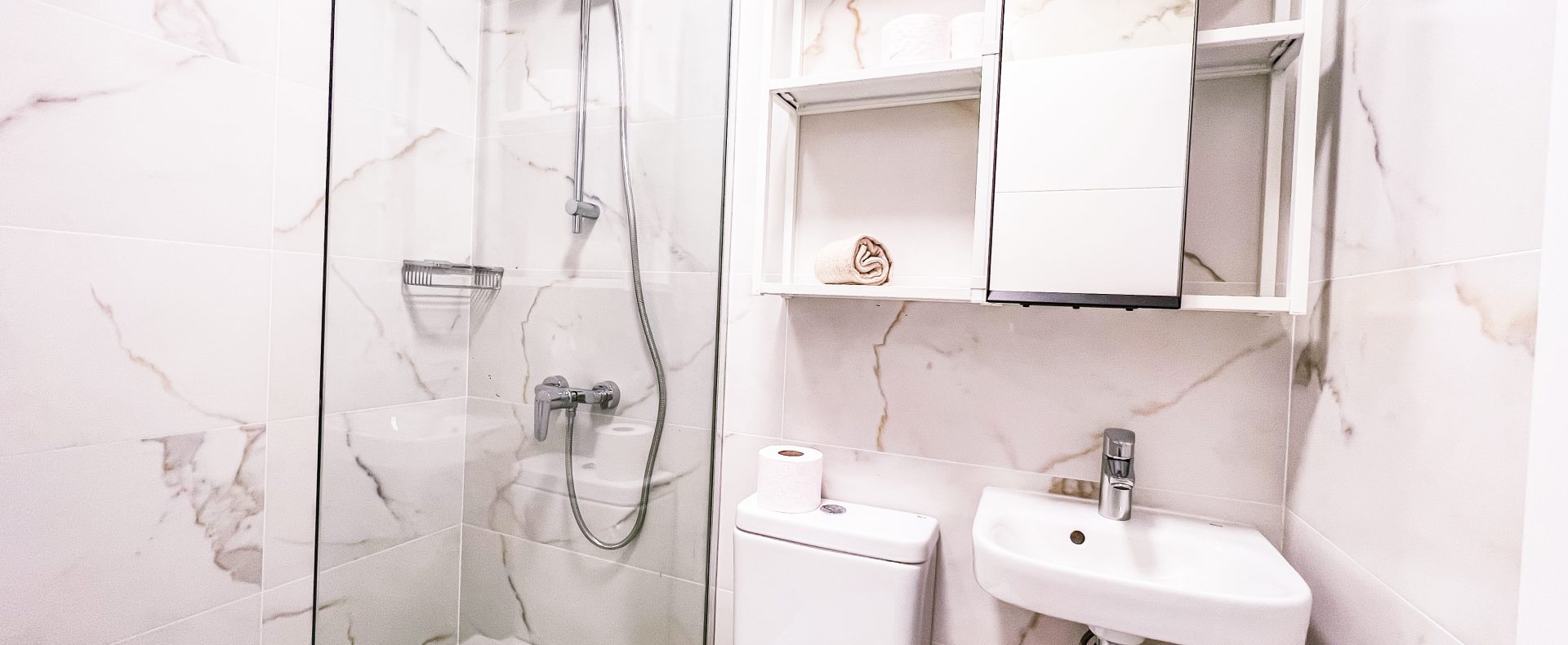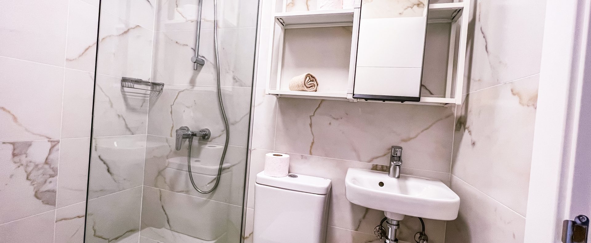 — There are 2 modern bathrooms with great walk-in shower that has good pressure