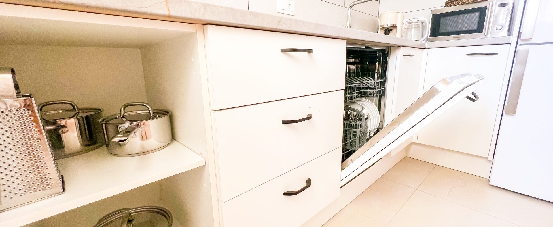 — Everything you might need to prepare and enjoy your lovely meals – pans and pots, as well cutlery, dishes and glasses