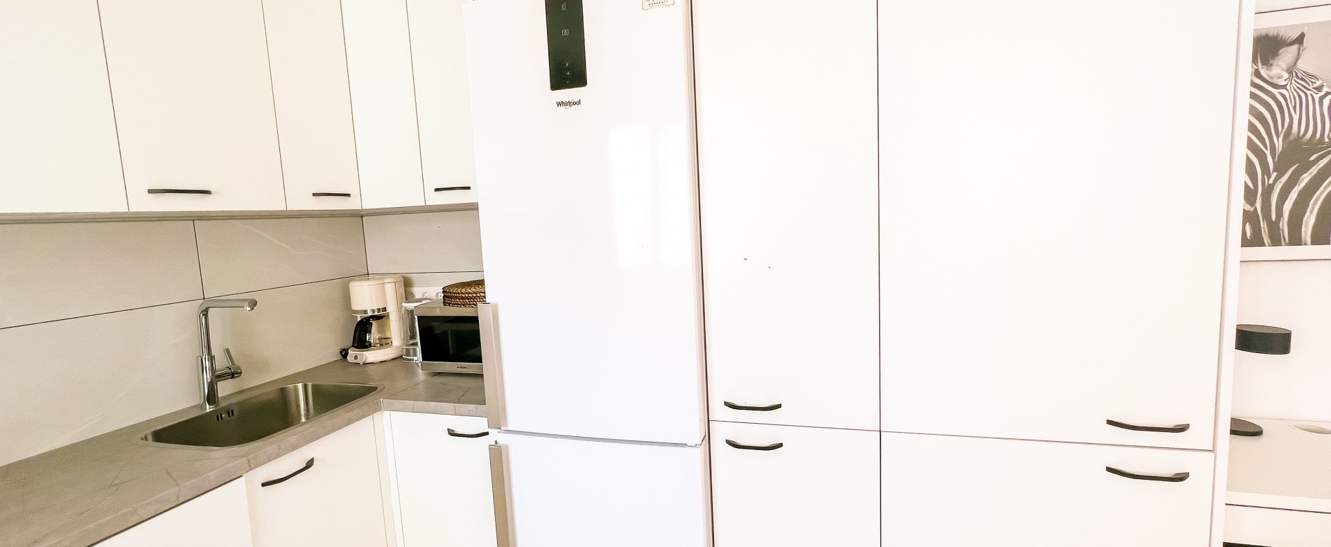 — The kitchen is equipped with stove, microwave, fridge, coffee machine and dishwasher, so your holiday is more joy and less work. There is also a washing machine