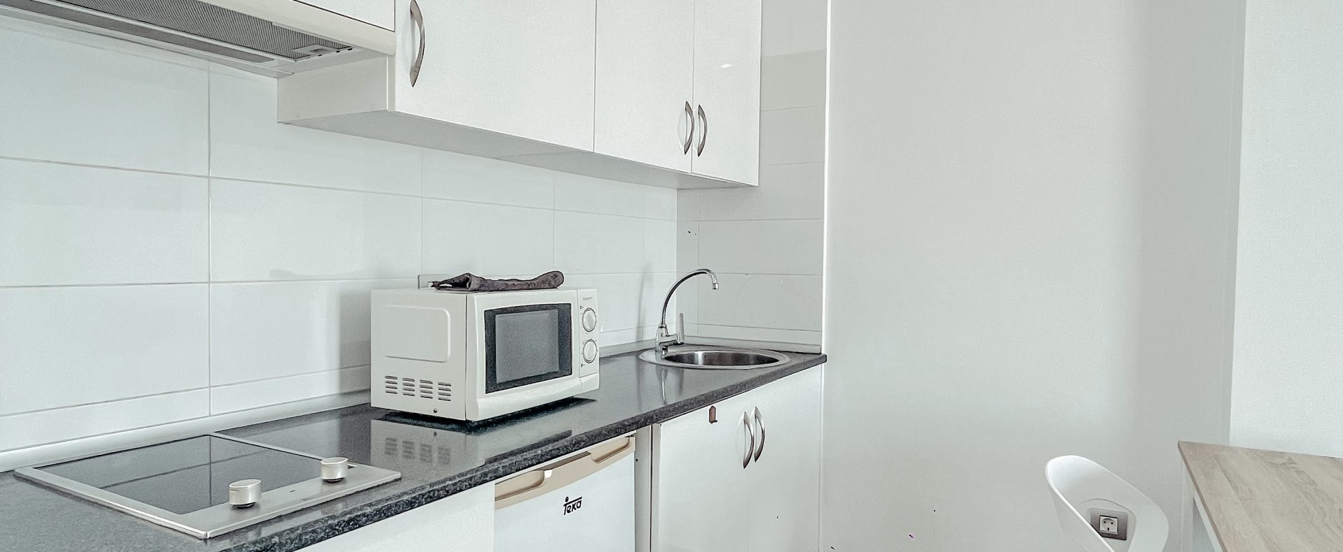 — Kitchen with everything you might need to prepare your easy holiday meals, coffee machine, kettle, microwave, stove top and minifridge with freezer. Also pots and pans, as well as dishes and glasses are provided for your stay.