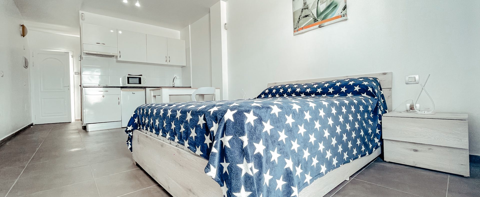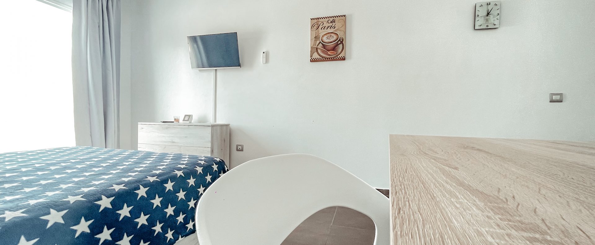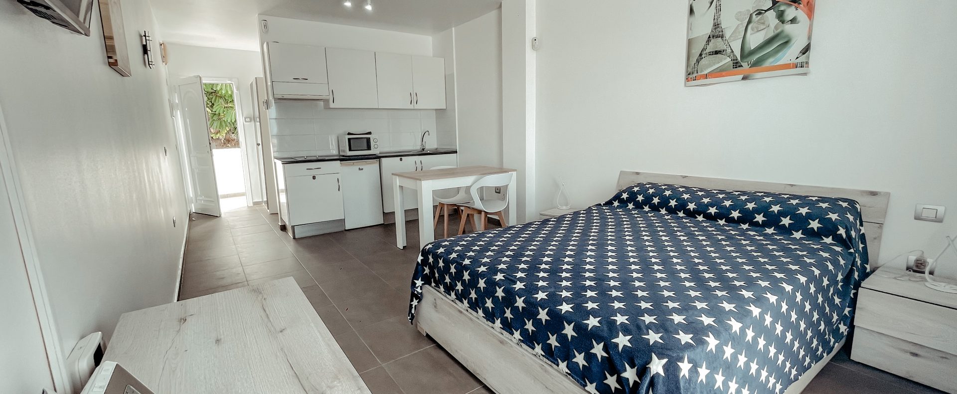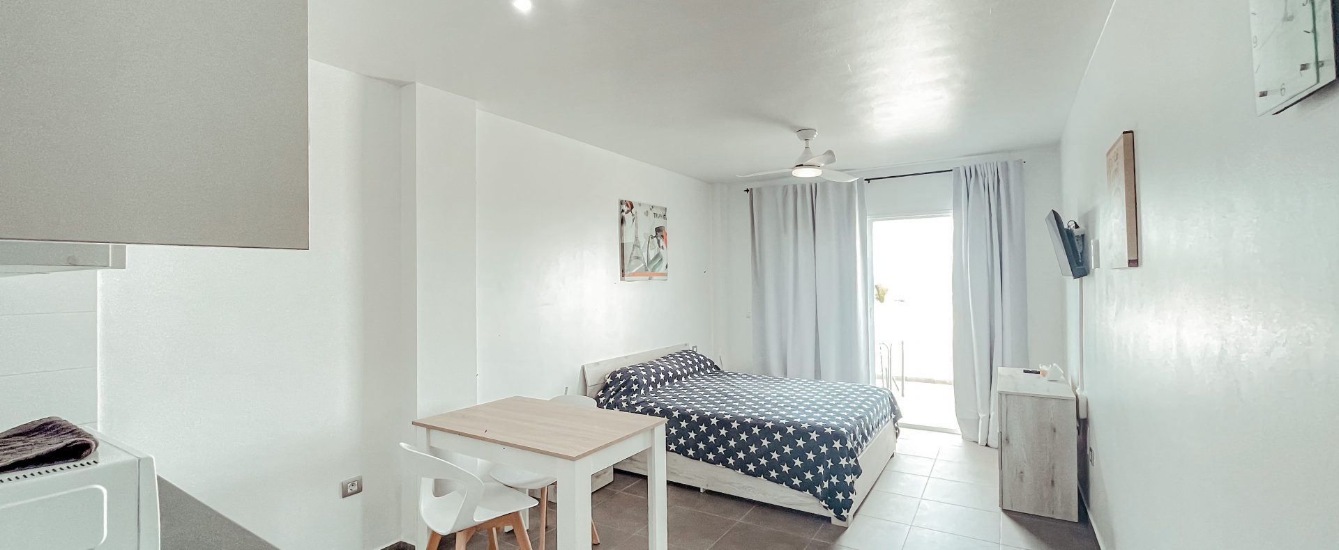 This bright studio is located in the heart of tourist loved Las Americas! Balcony with ocean view and easy access to the beach! Perfect location for unforgettable vacation in sunny Tenerife! This studio is designed for 2 people – family or friends!