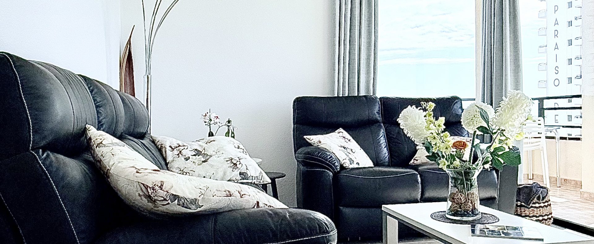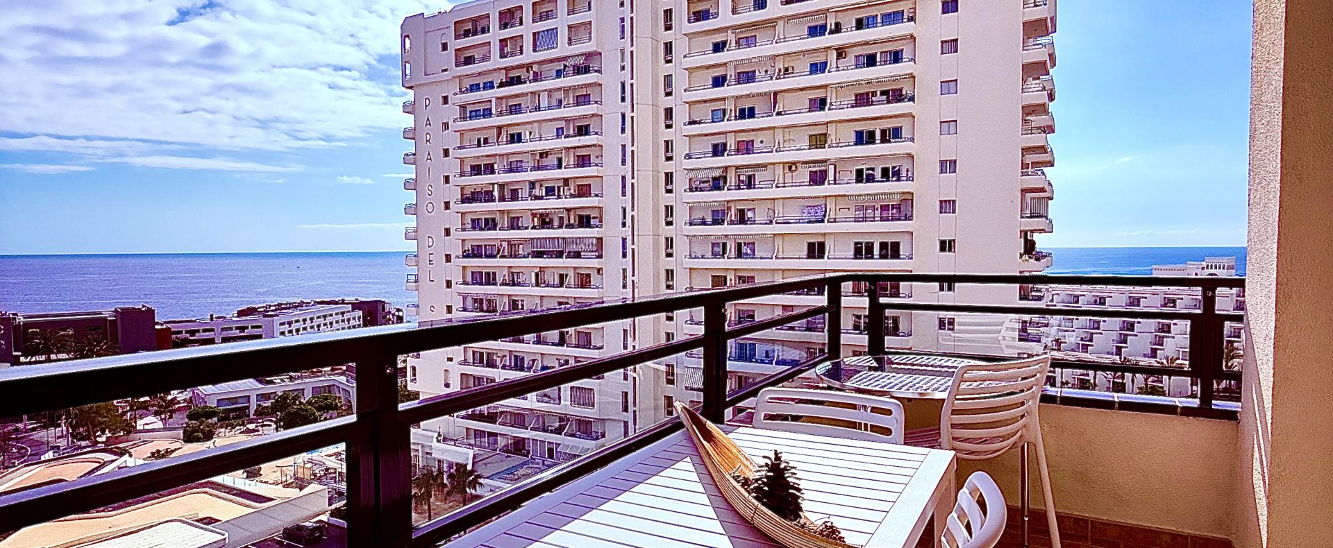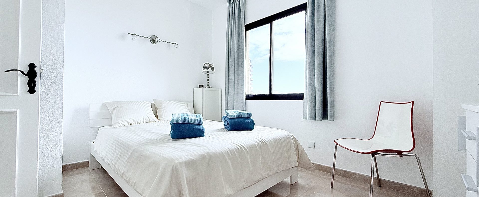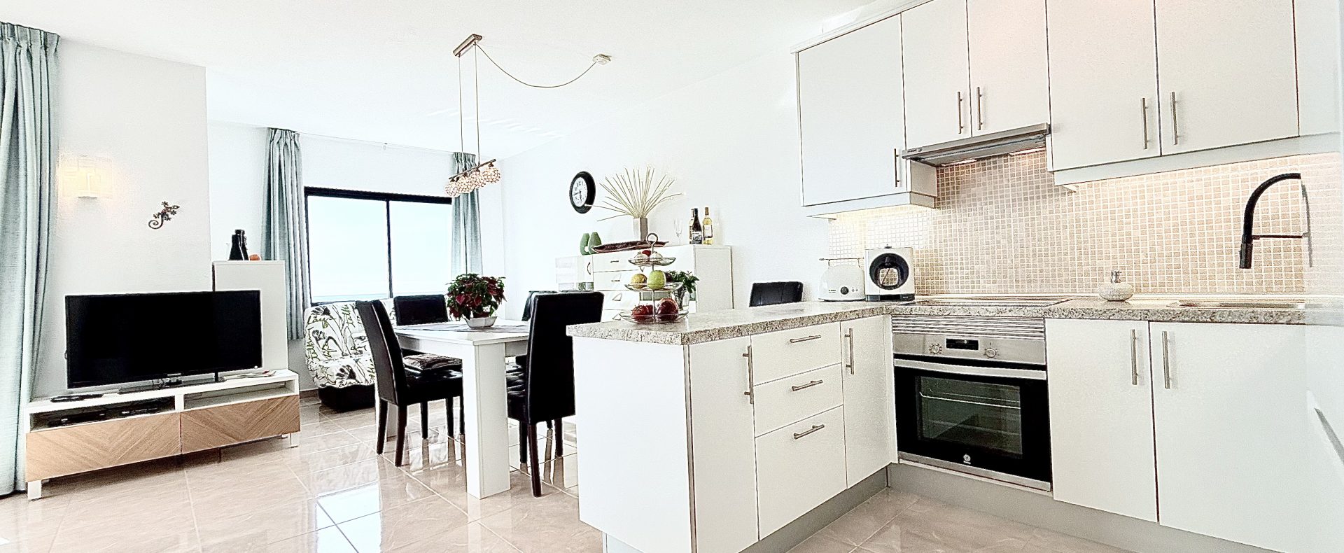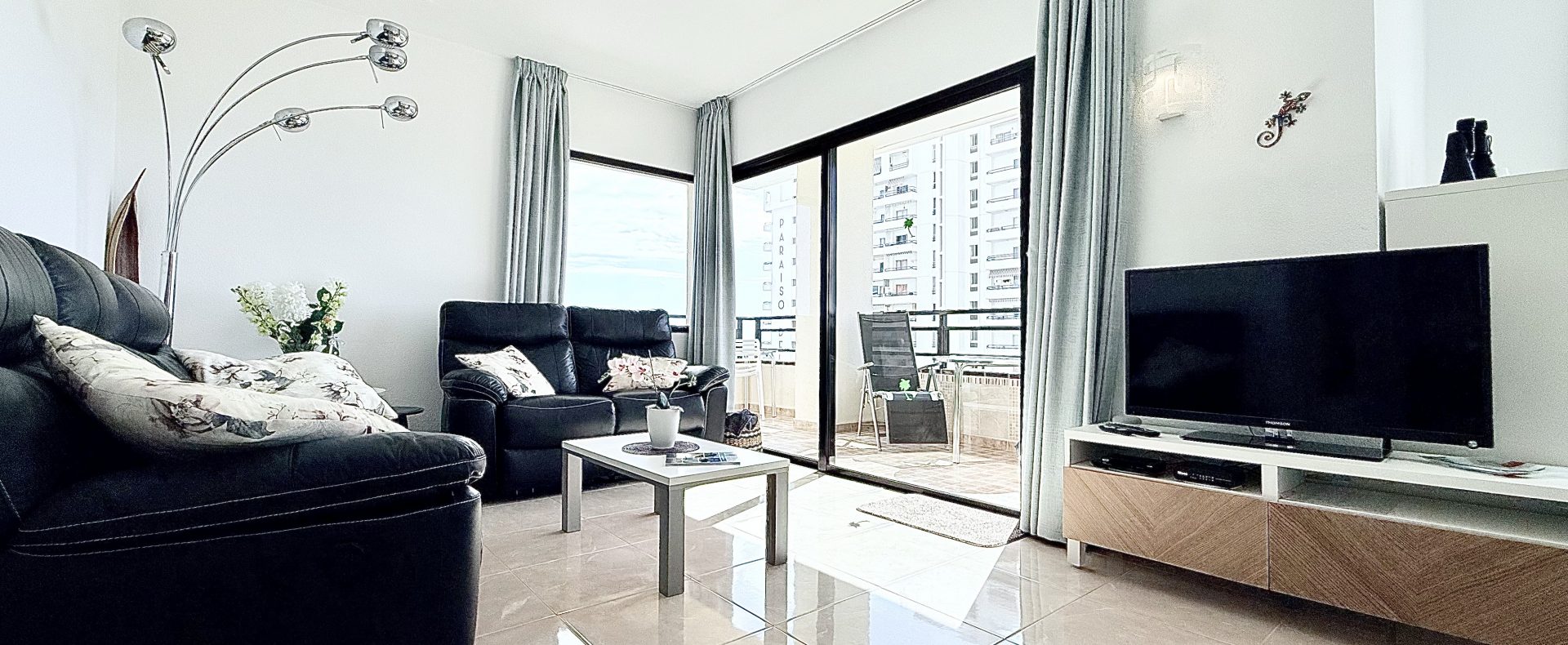 Vista Mar is a spacious and bright apartment located in the Club Paraíso, in the charming coastal town of Playa Paraíso, on the sunny south coast of Tenerife. It features 2 generous bedrooms, 2 bathrooms, a sunlit living room with a full kitchen, and panoramic windows leading to a private balcony where you can enjoy breathtaking sunsets over La Gomera. This great apartment for friends or family to share offers a large shared pool and stunning ocean views—ideal for a relaxing island getaway.